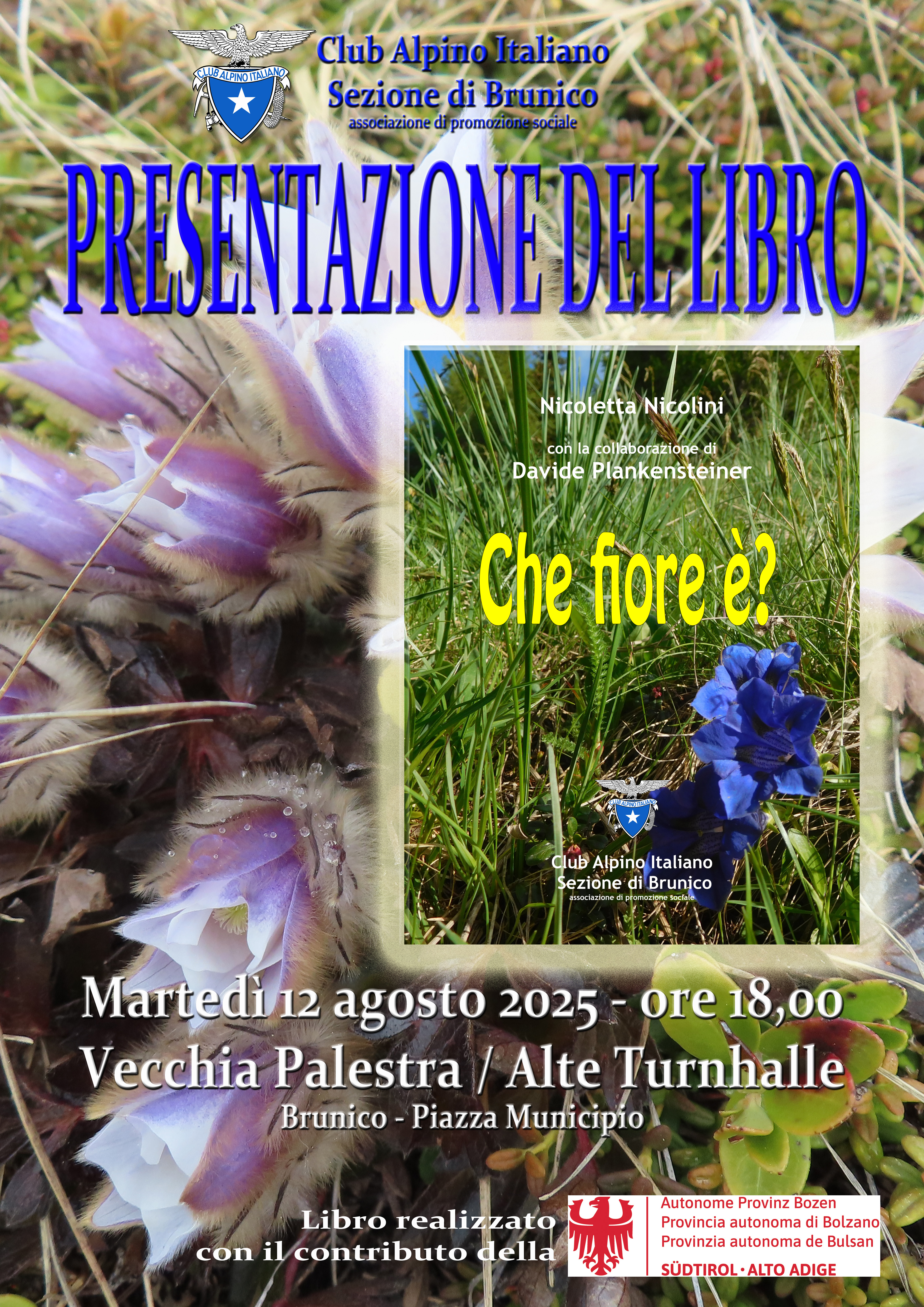 Il CAI di Brunico è lieto di presentare il libro Che fiore è? di Nicoletta Nicolini, un’opera dedicata ai fiori di montagna del nostro territorio. La presentazione si terrà lunedì 12 agosto alle ore 18:00 a Brunico.